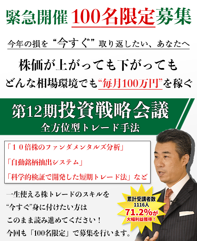 2015年にスタートした「投資戦略会議」という講座では、どんな相場環境でも成果を出せる