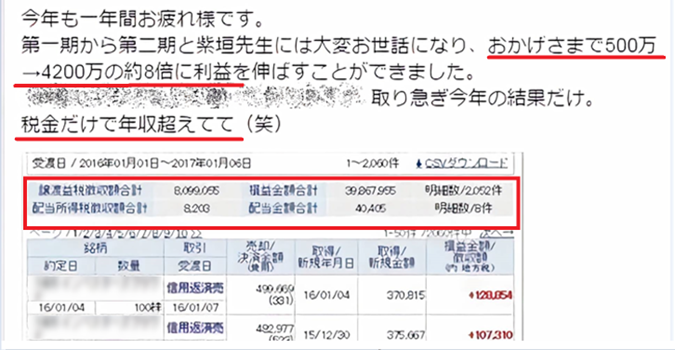 「おかげさまで500万円→4200万円の約8倍に利益を伸ばしました」